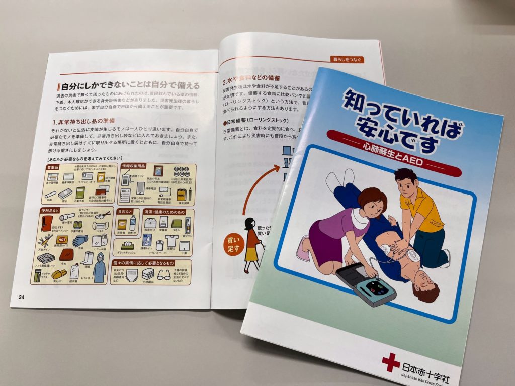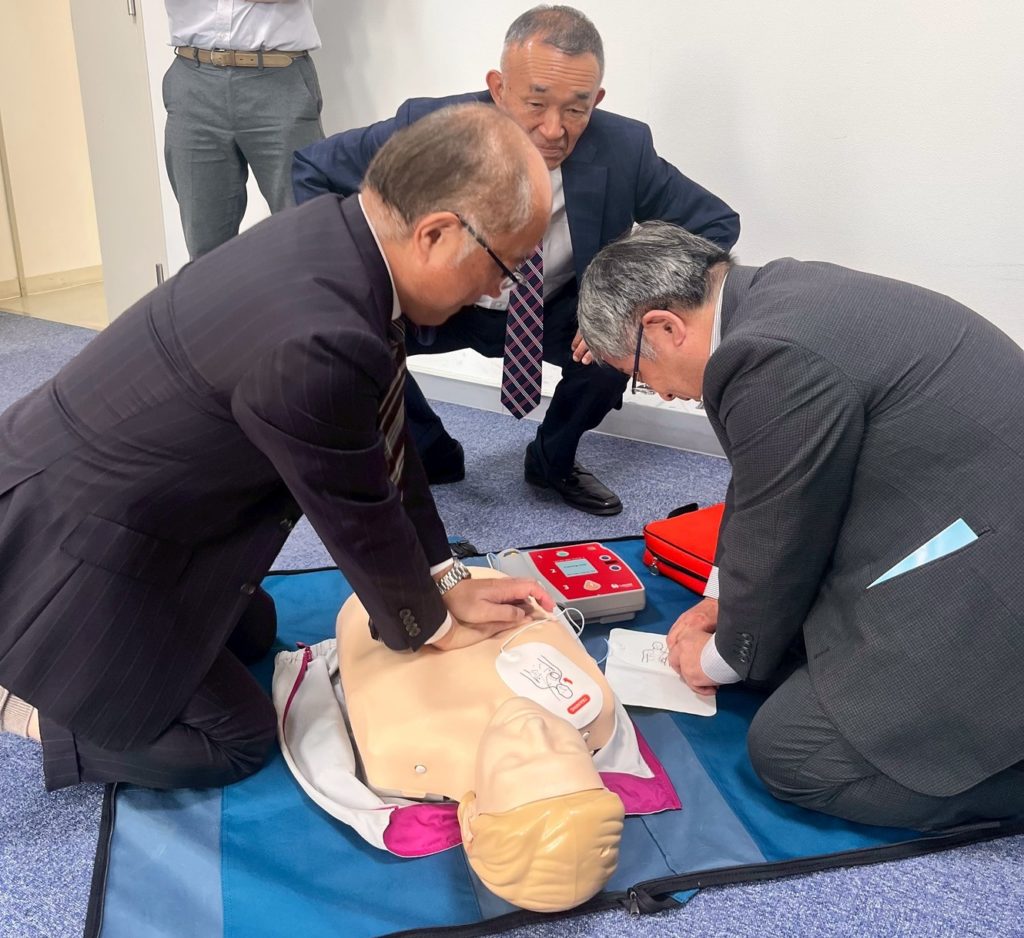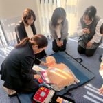 赤十字の方に来ていただき、一次救命処置(心肺蘇生)とAEDの実技を学びました。